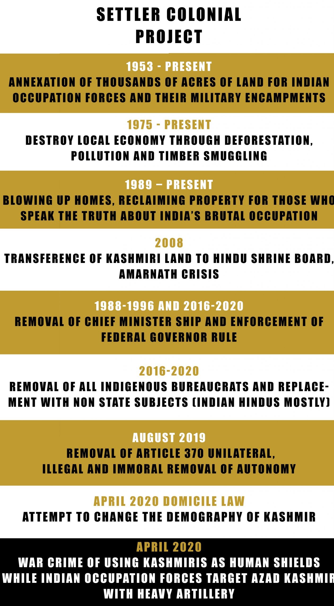 With the Indian consul general’s gruesome rhetoric, one ought to consider India‘s settler-colonial project. The fascist Indian state and its unilateral, illegal and undemocratic revocation of Kashmir’s autonomy by abrogating article 370 and alteration of Kashmir’s Domicile Law to allow demographic flooding is tantamount to a war crime and against International Law. Condemned worldwide, the United Nations and reputable NGO’s such as Amnesty International and Human Rights Watch have all strongly chastised India